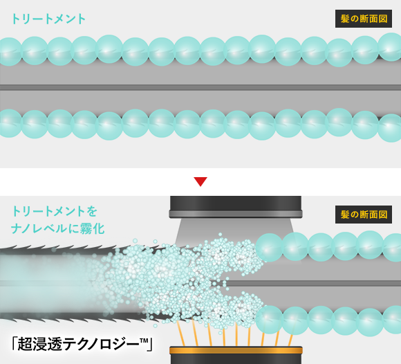超音波の力を使ってトリートメントをしっかり髪の内部まで浸透させて最大限引き出すアイテム